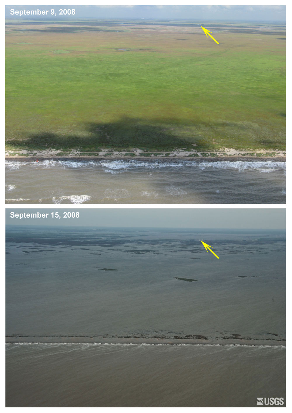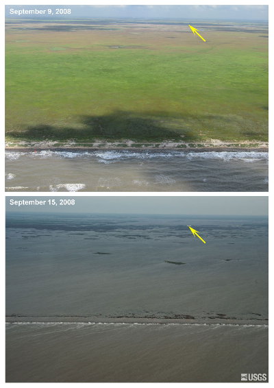 The yellow arrow in the USGS aerial photo above shows our location three weeks earlier. This photo above shows a last look at the fresh water marsh about 18 days before the hurricane. |