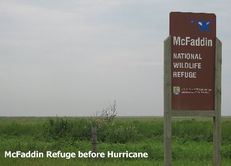 McFaddin Wildlife Refuge provided a fresh water barrier from the Gulf. Zillions of alligators and critters washed inland. See below photos for what McFaddin is supposed to look like. |